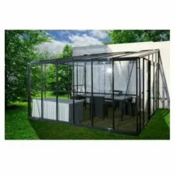 La serre est équipée d’une double porte coulissante, de 4 lucarnes et d’une base qui permet d’avoir un montage facilité et d’avoir une protection pour le verre. La serre possède un bon rapport qualité/prix et est garantie de 10 ans.