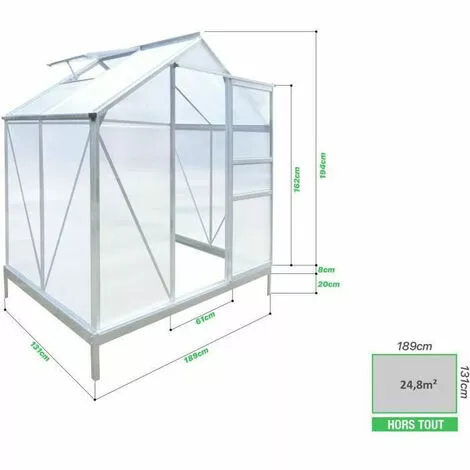 – Matériel: Structure en aluminium (1.2 mm) & Panneaux en polycarbonate (4 mm)