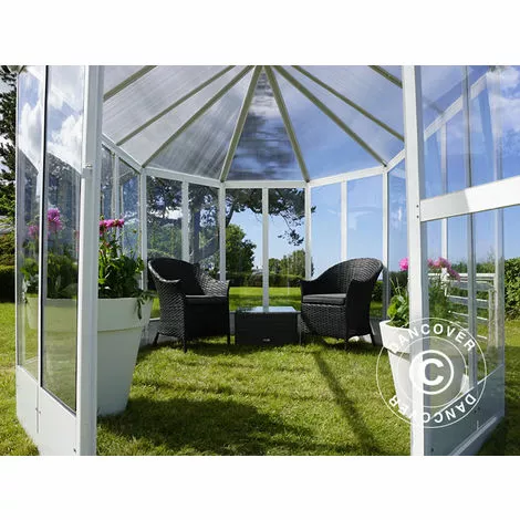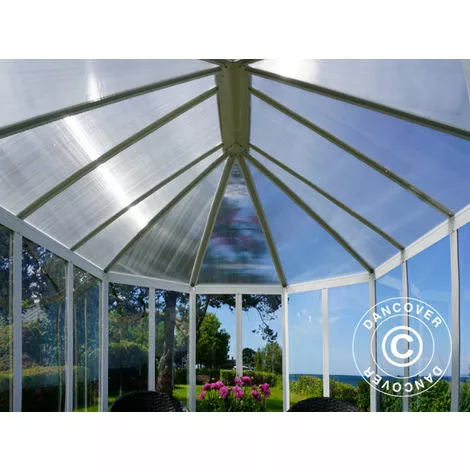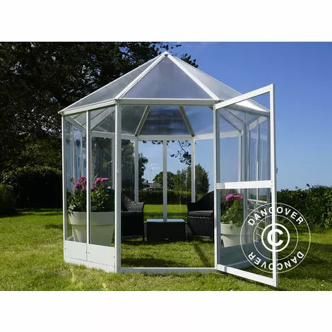 Un kiosque de jardin en matériaux robuste et légers Les fenêtres du kiosque sont faites en polycarbonate, bien plus résistantes que les fenêtres en verre des serres classiques. De plus, la transmission de lumière est de plus de 90%, vous n’aurez pas à faire de compromis sur la croissance de vos plantes ou l’ambiance en faisant le choix des fenêtres en polycarbnate. Le kiosque est livré avec une base en acier galvanisé et conviendra à tous les jardins pour prolonger la saison de plusieurs mois.