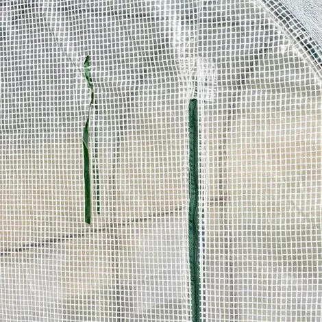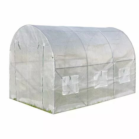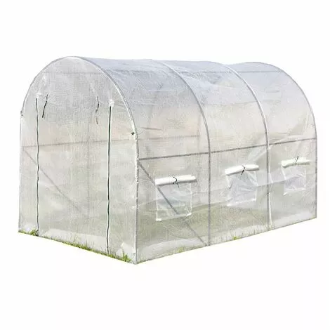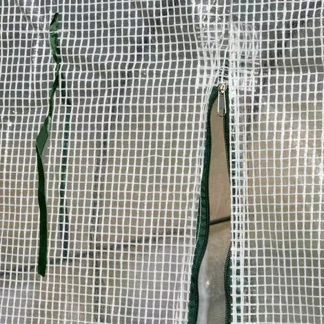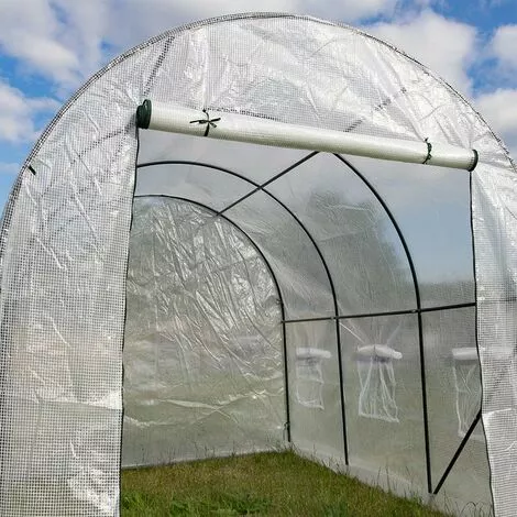 Ă€ l’ avant de la serre en film, une porte offre un accè s pratique, tandis que six fenĂŞ tres avec moustiquaires assurent la ventilation nĂ© cessaire.
