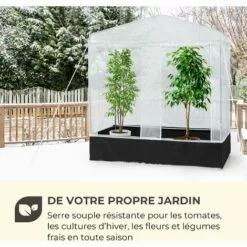 Cette serre spacieuse peut accueillir un nombre considérable de fruits, de légumes et de plantes. Cette serre sera une excellente solution pour protéger vos plantes contre le vent, la pluie, le soleil et les oiseaux. La serre est constituée de tissu maillé en PE de 170 g/m², soit 25 % plus lourd que le tissu maillé standard de nombreux fabricants. Par conséquent, elle prévient encore mieux les influences environnementales. Cette serre dispose d’un cadre en acier enduit de poudre robuste et résistant à la rouille pour une stabilité accrue. Cette serre est équipée d’étagères pour bien disposer et exposer les plantes ; et d’une porte pour une grande ventilation et un accès facile. La serre est facile à assembler. Veuillez noter que le toit de notre serre ne peut pas supporter de fortes chutes de neige.