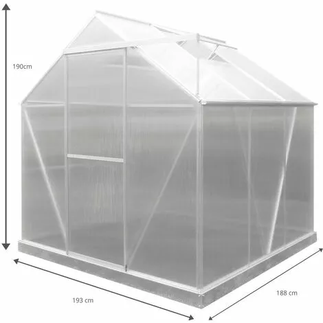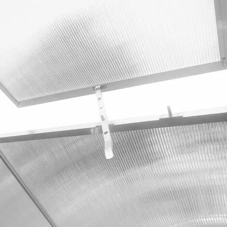 Cette serre est fabriquée avec des panneaux de polycarbonate de 4 mm d’épaisseur avec une protection anti-UV. Ce modèle dispose d’une fenêtre dans la partie supérieure pour favoriser la ventilation lorsqu’elle est nécessaire. Sa structure est en aluminium de 1,0 à 2,4 mm d’épaisseur et ses fixations sont en acier inoxydable.
