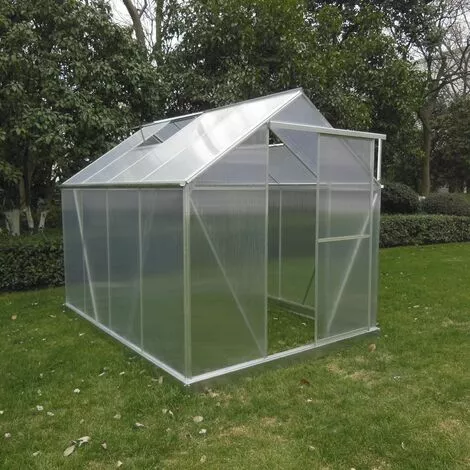 Cette serre est fabriquée avec des panneaux de polycarbonate de 4 mm d’épaisseur avec une protection anti-UV. Ce modèle dispose d’une fenêtre dans la partie supérieure pour favoriser la ventilation lorsqu’elle est nécessaire. Sa structure est en aluminium de 1,0 à 2,4 mm d’épaisseur et ses fixations sont en acier inoxydable.