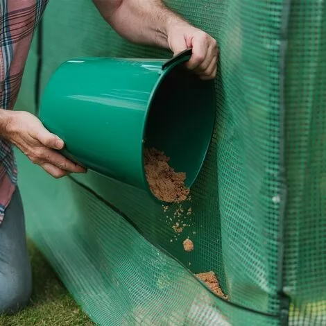 | Informations complémentaires | 4 étagères. Porte enroulable avec zip. Housse conçue pour résister aux UV. Poches innovantes à remplir de sable pour lester l’ensemble. Structure enduite – ne rouille pas. |