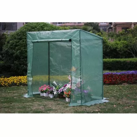 Serre tomate “Petunia” – 2 x 0.77 x 1.69 m – Film vert en polyéthylène traité anti-UV : 140 g/m² – Armature en métalSerre tomate “Petunia”