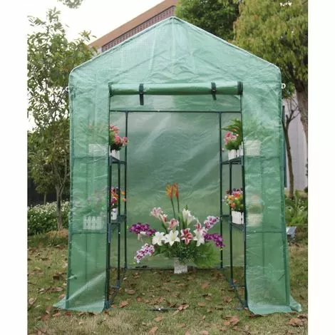 Serre tomate “Petunia” – 1.43 x 1.43 x 1.95 m – Film vert en polyéthylène traité anti-UV : 140 g/m² – Armature en métal – Etagère inclueSerre tomate “Petunia”