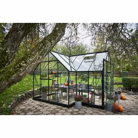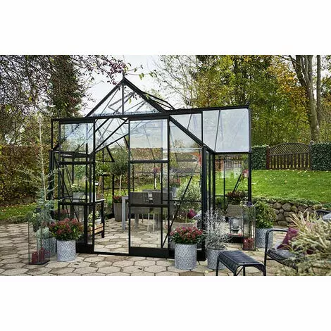 Cette serre de jardin en verre trempé d’une surface de culture de 12.90 m² est le potager idéal de tous les jardiniers. Plusieurs avantages : épaisseur du verre, hauteur sous faîtière importante, renforts, gouttières, porte coulissante, 4 lucarnes…