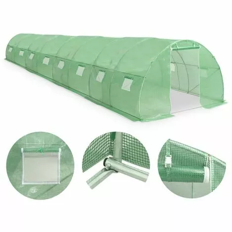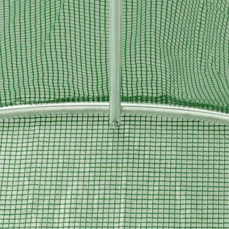 Cette serre spacieuse peut accueillir un nombre considérable de fruits, de légumes et de plantes. Cette serre sera une excellente solution pour protéger vos plantes contre le vent, la pluie, le soleil et les oiseaux. La serre est constituée de tissu maillé en PE de 140 g/m², soit 25 % plus lourd que le tissu maillé standard de nombreux fabricants. Par conséquent, elle prévient encore mieux les influences environnementales. Cette serre dispose d’un cadre en acier galvanisé robuste et résistant à la rouille pour une stabilité accrue. Cette serre est équipée de seize fenêtres de ventilation de 38 x 38 cm et d’une porte de 100 x 185 cm. La serre est facile à assembler. Nous vous recommandons d’ajouter la fondation pour plus de robustesse. Veuillez noter que le toit de notre serre ne peut pas soutenir des fortes chutes de neige.