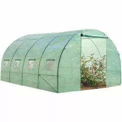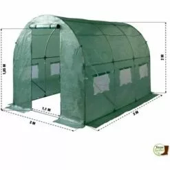 Idéale pour cultiver efficacement en toutes saisons vos propres fruits et légumes !Cette serre offre une superficie optimale de 12 m² et garde vos plantes bien à l’abri des intempéries.Elle protège vos cultures en hiver et permet de booster leur croissance au printemps et en été.Ses 5 arceaux renforcés et sa bâche armée 140 gr/m² blanche translucide indéchirable lui confèrent robustesse et longévité quelles que soient les conditions climatiques.Grâce à sa forme tunnel, elle maintient la bonne température à l’intérieur quelque soit la température extérieure.Elle retient la chaleur à l’intérieur l’hiver et protège de la chaleur caniculaire l’été.Elaborée avec l’aide de professionnels du jardinage, elle s’adapte à toutes les situations.Ses 4 ouvertures à moustiquaires permettent une aération et une lumière optimale tout en protégeant vos cultures des insectes et autres parasites.Sa large porte zippée est très pratique et très fonctionnelle.Tubes et raccords en acier galvanisé 25 mm conçus pour résister à la corrosion.Surface totale 12 m²Longueur 4 mLargeur 3 mHauteur 2 mAvec barre anti-tempête.Ses côtés sont inclinés pour une plus grande résistance face au vent.Anti-UV.Bâche de rechange blanche pour serre 12m2 disponible sur notre boutique en ligne.SERRE TUNNEL 12M² VERTE