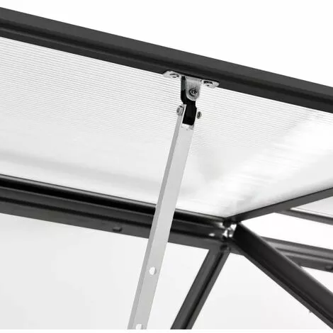 Cette serre spacieuse a une surface totale de 8,17 m². Elle peut accueillir un nombre considérable de plantes et sera une excellente solution pour protéger vos plantes du froid. Fabriquée en panneaux de polycarbonate, cette serre solide est résistante aux UV et isolée thermiquement. La serre a une construction en aluminium robuste et sans entretien pour plus de stabilité. Le système de gouttière permet efficacement l’évacuation de l’eau, et l’évent de toit assure une ventilation optimale par temps chaud. Les panneaux de toit sont fixés avec des clips métalliques, garantissant sa durabilité et son utilisation à long terme. Notre serre est facile à assembler. Veuillez noter que la fondation n’est pas incluse et le toit de notre serre ne peut pas supporter de fortes chutes de neige.Couleur : anthracite et transparentMatériau : aluminium, polycarbonateDimensions : 190 x 430 x 125/195 cm (L x l x H)Surface au sol : 8,17 m²Capacité : 13,702 m³Épaisseur du panneau : 4 mmRésistance aux UVL’assemblage est requisNous ne livrons pas en Corse.