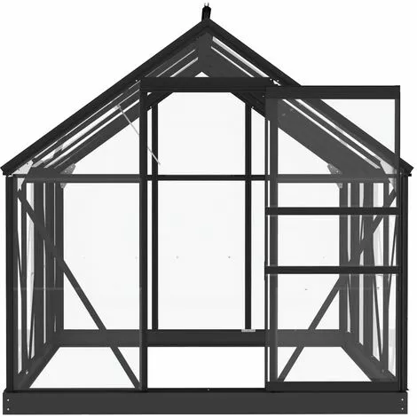 Créez un espace idéal pour propager les graines et les protéger du froid avec cette serre en verre. Fabriquée en aluminium et en acier, cette solide serre est résistante aux UV et isolée thermiquement. L’abri en verre a une construction en aluminium robuste et sans entretien avec un cadre de base en acier pour plus de stabilité. La serre en verre garantit la croissance efficace de vos plantes en stockant l’humidité et en offrant une protection optimale contre les conditions météorologiques extrêmes.Couleur : anthraciteMatériau : aluminium, acier, verreDimensions : 155 x 200,5 x 191 cm (l x P x H)Épaisseur du verre : 3 mmDimensions de la porte : 49 x 154 cm (l x H)Hauteur de la base : 10,5 cmL’assemblage est requisNous ne livrons pas en Corse.