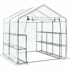 Serre De Jardin Avec Bâche Armée Transparent PVC Gardiun Double Leaf 143x143x195 Cm