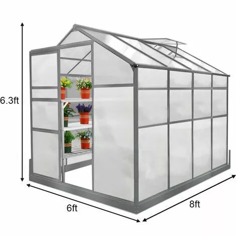 Cette serre de jardin a un cadre en aluminium épais et des plaques en polycarbonate haute densité. Les plaques pc à double paroi résistant vous assurent la protection de vos plantes contre les UV, tout en vous laissant admirer vos jolies plantes.