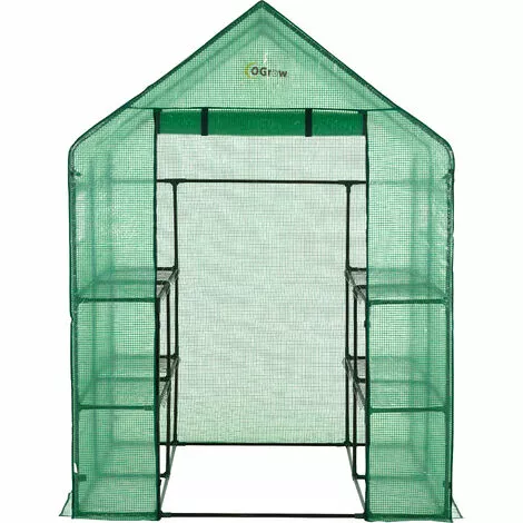Si vous êtes un amateur de jardinage et que vous souhaitez faire pousser des légumes, plantes et fleurs toute l’année, cette mini serre de jardin Ogrow 142,3 cm x 142,3 cm x 195,6 cm / 56 x 56 x 77 pouces (Largeur / Profondeur / Hauteur) à 2 niveaux avec un total de 8 étagères est parfait pour vous. Nos serres de jardin sont bon marché, légères et faciles à assembler. Aucun outil nécessaire pour l’assemblage! Conçu avec des connecteurs en plastique spéciaux de haute qualité pour un assemblage facile. Cette tente est parfaite pour votre jardin, potager, pelouse et arrière-cour! Le cadre robuste enduit de poudre vert foncé pour la protection contre la rouille offre un soutien suffisant pour les casseroles et les poêles. Le couvercle en polyéthylène vert résistant avec emballage intégré permet un accès facile aux intérieurs où se trouvent des étagères solides pour les vases et les plateaux. La serre de jardin d’hiver se connecte avec des lacets offrant ainsi une plus grande durabilité. Cet abri pour légumes, plantes et fleurs a une couverture durable qui garantit des années d’utilisation et ne se décolore pas ni ne se fissure au soleil. Ce modèle de plain-pied permet la croissance de plantes succulentes, a de grandes dimensions et un accès et une ventilation faciles. L’achat comprend des instructions de configuration et d’entretien claires. Lorsque la saison chaude arrive, cette petite serre de jardin est l’endroit idéal pour un jardinier. Notre serre portable comprend un système d’ancrage. Les ancres fixeront cette serre en plastique au sol à l’aide de cordes solides et d’ancrages lourds qui assureront la robustesse même dans les pires conditions météorologiques!