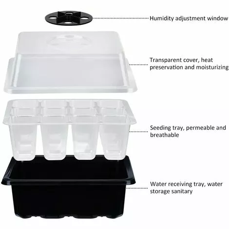 Bon assistant de démarrage des graines – Les évents réglables sur le dôme d’humidité de ces bacs à graines vous permettent de réguler la température et l’humidité de votre environnement de semis, de sorte que vous ayez un contrôle total sur le processus de croissance.