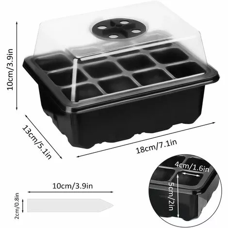 Taille parfaite pour le démarrage des graines – Chaque graine le plateau a 12 cellules, taille du plateau de semences : 18*14*5cm, chaque taille de compartiment : 3,8*3,8*5cm. Ces bacs à graines conviennent aux petites graines, telles que les fleurs, les légumes, les fruits, le tabac et d’autres plantes.