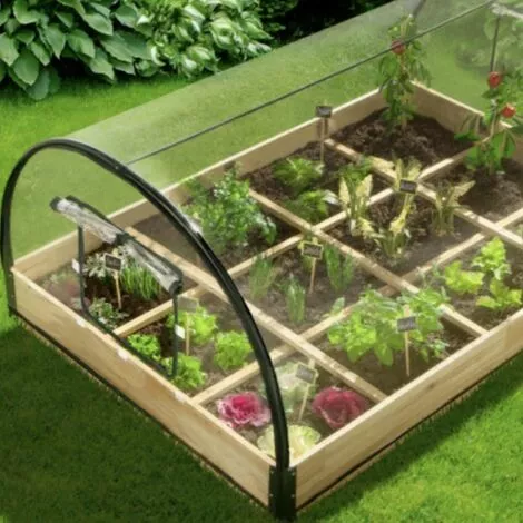 Récoltez plus tôt et à l’abri des dernières gelées avec votre carré potager / mini-serre de jardin avec châssis facile à installer, fournie avec sa couverture de protection transparente incluant 2 ouvertures.