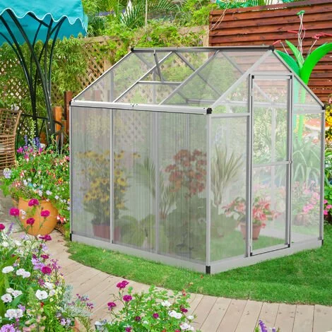 – Serre aluminium polycarbonate grande surface de 3,3 m² au sol pour la culture de vos fleurs, légumes, fruits, etc…