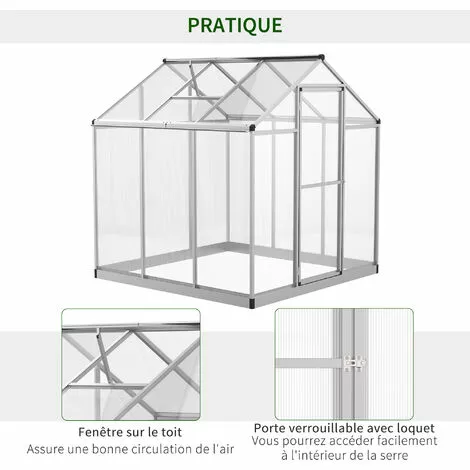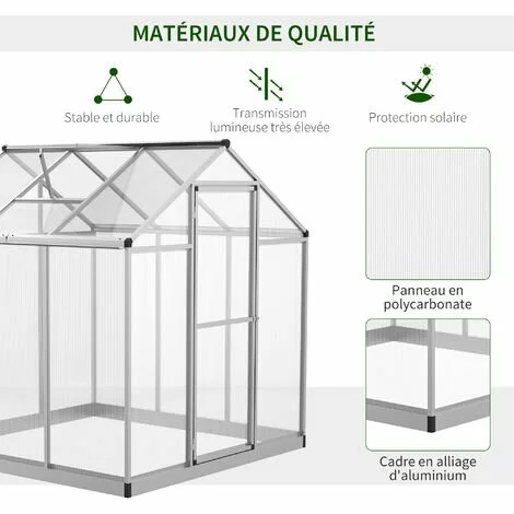 – Châssis robuste et stable en aluminium anodisé panneaux double paroi en polycarbonate alvéolé isolant et anti-UV de 4 mm