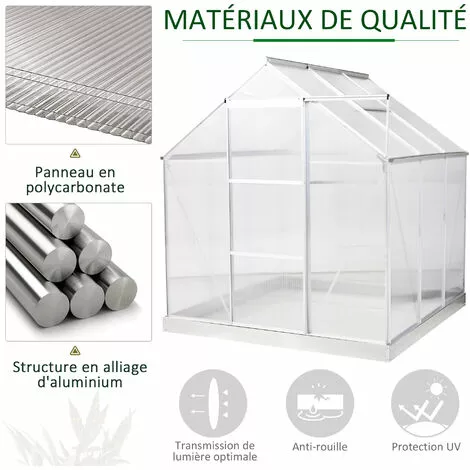 – Châssis robuste et stable en aluminium anodisé panneaux double paroi en polycarbonate alvéolé isolant et anti-UV de 4 mm