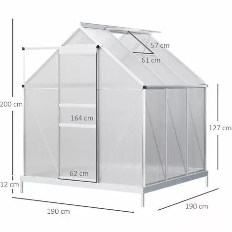 – Serre aluminium polycarbonate grande surface de 3,61 m² au sol pour la culture de vos fleurs, légumes, fruits, etc.