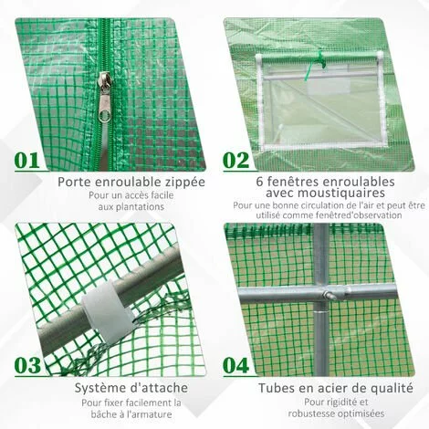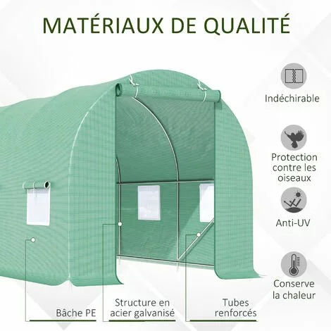 Cette magnifique serre de jardin tunnel vous aidera à protéger vos plantes contre les aléas climatiques et les oiseaux. Sa conception et fabrication avec des matériaux de qualité vous assureront un parfait rendement.
