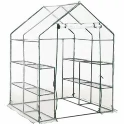 ASUPERMALL Serre De Plain-pied Avec 12 Etageres Acier 143x214x196 Cm