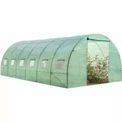IDMARKET Serre à Tomates Relevable Verte 2 Fenêtres Avec Moustiquaire Et Porte Zippée