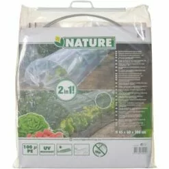 NATURE Kit Tunnel 2-en-1 Film Transparent + Filet Anti-insectes + 6 Arceaux 300x60x45cm