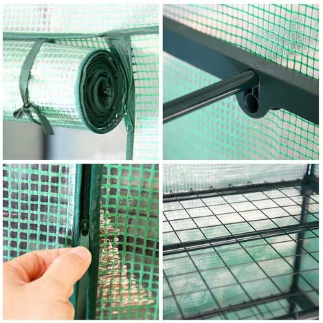 – La couverture verte en PE (140g/m²) protège contre les diffĂ©rentes conditions mĂ©tĂ©orologiques, comme les fortes pluies, le vent et la neige.La performance solaire, maintient la serre Ă l’intĂ©rieur plus chaud et contribue Ă soutenir la croissance optimale de vos plantes.