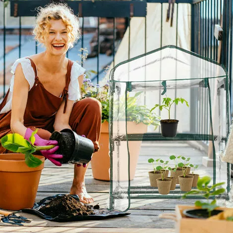 Cetteserre de balcon est une aide précieuse pour tous les jardiniers amateurs quisouhaitent cultiver et faire pousser des plantes. La bâche translucide offreune protection contre le vent, les précipitations et le froid, afin qu’unegrande variété de plantes puissent pousser et s’épanouir. La porte enroulableassure un apport d’air optimal et un accès facile à vos plantes. Grâce à sataille compacte, cette serre de jardin est également parfaite pour les petitsbalcons.