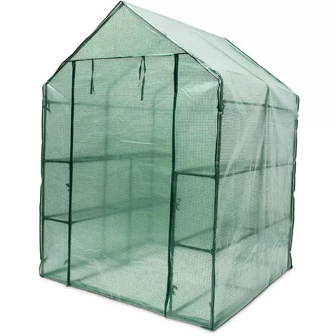 Vous voulez savourer les légumes et les fruits de votre propre jardin ? Alors, nous avons ce qu’il vous faut ! Notre serre de jardin est praticable à pied et se monte en deux temps trois mouvements et sans outils grâce à son système d’emboîtement pratique. Elle dispose d’un cadre en acier robuste et d’une bâche verte en PE. De plus, les sardines et la corde inclus dans la livraison assurent un maintien sûr de la serre. Enfin, vous pouvez disposer vos petites plantes sur les 8 étagères que vous pouvez également ôter pour faire pousser vos plants de tomates.
