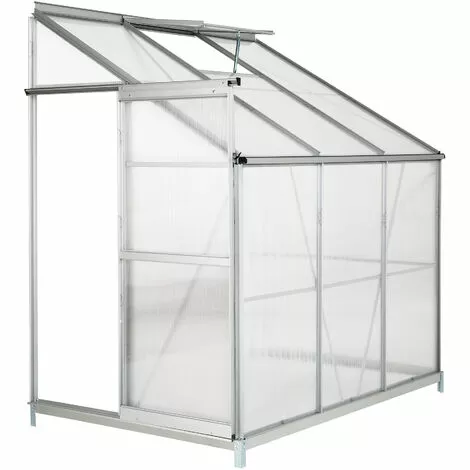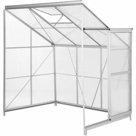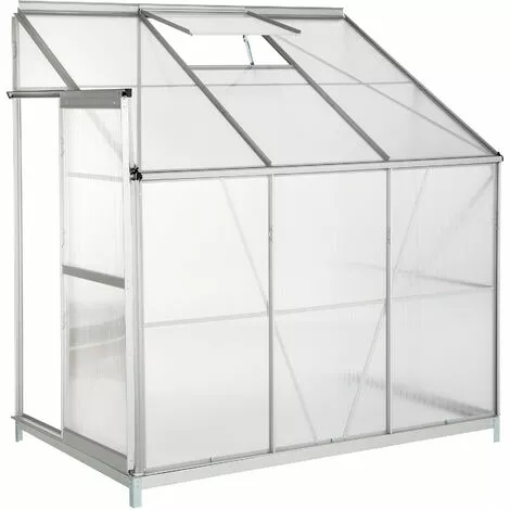 Serre de Jardin, Serre de Jardinage, Abri de Jardin Adossée 4,09 m³ + 1 Fondation en Aluminium 192 cm x 128 cm x 202 cm TECTAKE. • Cette serre de jardinage très pratique avec des fondations est idéale pour être adossée à votre maison, à un mur de votre jardin ou à une remise. • Plantez simplement vos légumes, vos fruits et vos herbes aromatiques et affranchissez-vous des contraintes de saison. • Notre abri de jardin offre une protection parfaite contre les conditions météorologiques. • Il protège efficacement vos cultures contre la pluie, le rayonnement extrême du soleil ou les dommages causés par les oiseaux. • La lucarne assure une bonne aération. • Le châssis résistant en aluminium anodisé, les plaques creuses résistantes aux UV et la lucarne de toit viennent parachever le profil de cette serre de qualité. • Les fondations qui renforcent la stabilité et la résistance de la serre sont incluses dans la livraison.