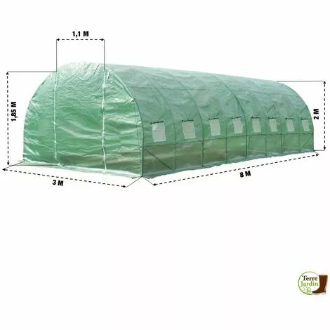 Serre de jardin tunnel avec bâche verte renforcée – 24 m2 – 8x3x2m
