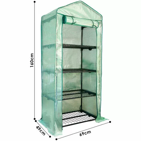 – Serre se compose de 4 étagères, offrant ainsi suffisamment d’espace et la possibilité d’y placer de petites plantes, des outils de jardinage et des pots.