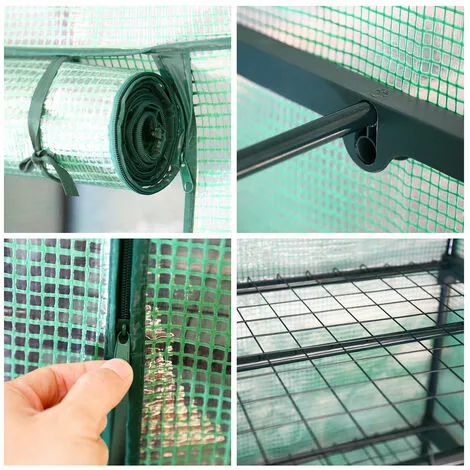 – La couverture verte en PE (140g/m²) protège contre les différentes conditions météorologiques, comme les fortes pluies, le vent et la neige.La performance solaire, maintient la serre à l’intérieur plus chaud et contribue à soutenir la croissance optimale de vos plantes.