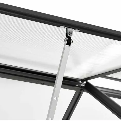 Cette serre spacieuse a une surface totale de 4,75 m². Elle peut accueillir un nombre considérable de plantes et sera une excellente solution pour protéger vos plantes du froid. Fabriquée en panneaux de polycarbonate, cette serre solide est résistante aux UV et isolée thermiquement. La serre a une construction en aluminium robuste et sans entretien pour plus de stabilité. Le système de gouttière permet efficacement l’évacuation de l’eau, et l’évent de toit assure une ventilation optimale par temps chaud. Les panneaux de toit sont fixés avec des clips métalliques, garantissant sa durabilité et son utilisation à long terme. Notre serre est facile à assembler. Veuillez noter que la fondation n’est pas incluse ; et le toit de notre serre ne peut pas supporter de fortes chutes de neige.
