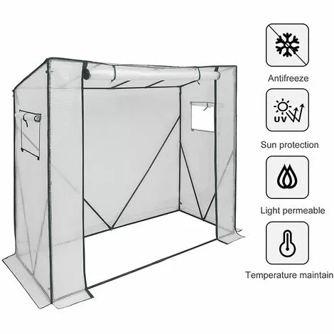 Le matériau est solide et durable: Housse de la serre pour plantes est faite en PE écologique. Étant renforcé avec grille plastique. ce matériau de haute densité de 130 g/m2 est résistant à l’usure. à la corrosion. à la déchirure. à l’eau et aux UV. Cet abri des plantes protège contre le froid et le vent et a pour effet de maintenir la température et l’humidité de l’air et du sol. Constitué de tube en acier laqué de 16 mm de diamètre. le cadre de la serre de jardin est assez stable et inoxydable