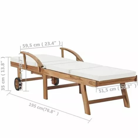 Matériau : Bois dur de teck finement poncé avec finition à base d’eau. Matériau du tissu : 100 % polyester. Matériau du cadre : acier galvanisé. Dimensions : 195 x 59,5 x 35 cm (L x L x H). Dossier réglable en 3 positions. Repose-pied réglable en 4 positions. Avec une table glissante. Assemblage requis : oui. La livraison contient : 2 x chaise longue, 2 x coussin.
