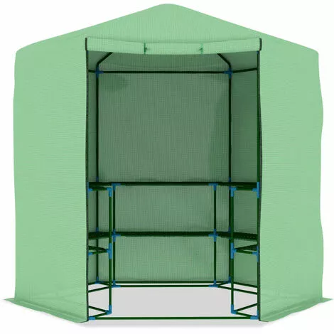 Cette serre spacieuse peut accueillir un nombre considérable de fruits, de légumes et de plantes. Cette serre sera une excellente solution pour protéger vos plantes contre le vent, la pluie, le soleil et les oiseaux. La serre est constituée de tissu maillé en PE de 170 g/m2, soit 25 % plus lourd que le tissu maillé standard de nombreux fabricants. Par conséquent, elle prévient encore mieux les influences environnementales. Cette serre dispose d’un cadre en acier enduit de poudre robuste et résistant à la rouille pour une stabilité accrue. Cette serre est équipée d’étagères pour bien disposer et exposer les plantes ; et d’une porte pour une grande ventilation et un accès facile. La serre est facile à assembler. Veuillez noter que le toit de notre serre ne peut pas supporter de fortes chutes de neige.